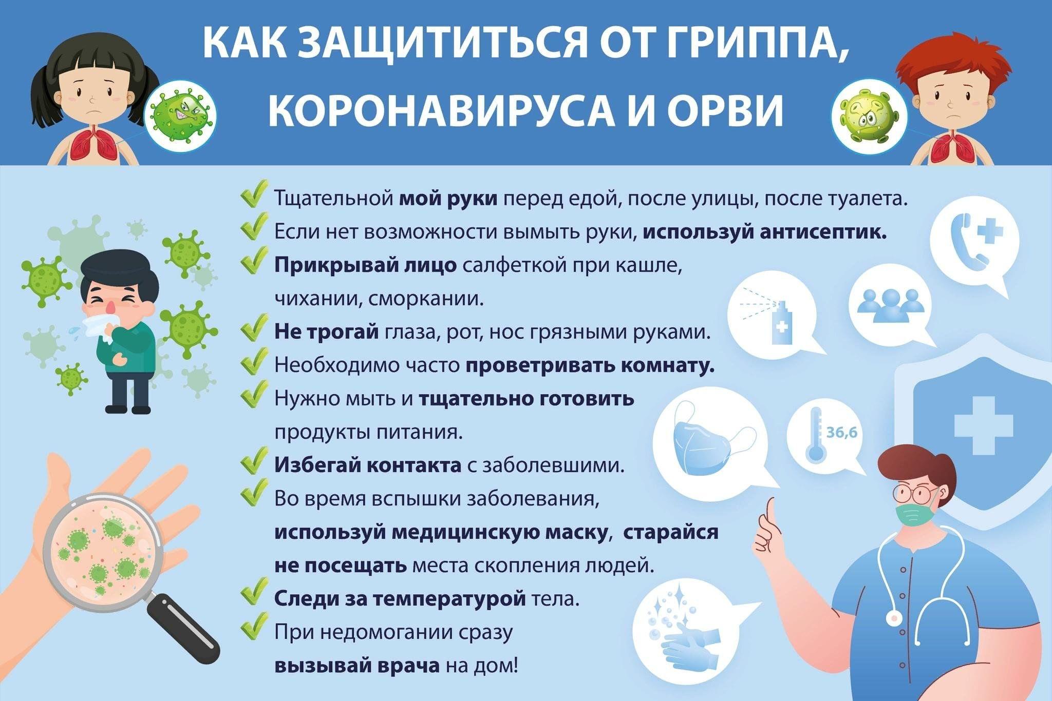 ВНИМАНИЕ ГРИПП!!! Как защитить себя и других? В эпидсезон циркуляции вирусов гриппа и ОРВИ важно соблюдать меры предосторожности.